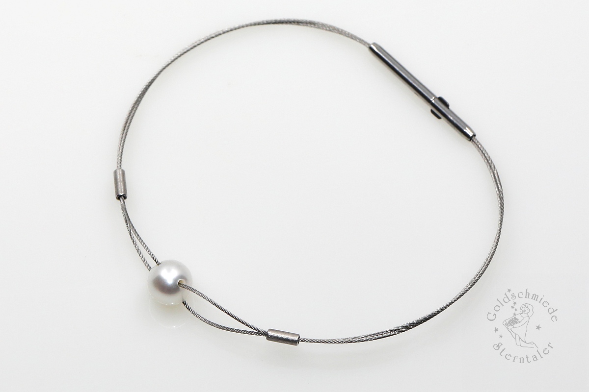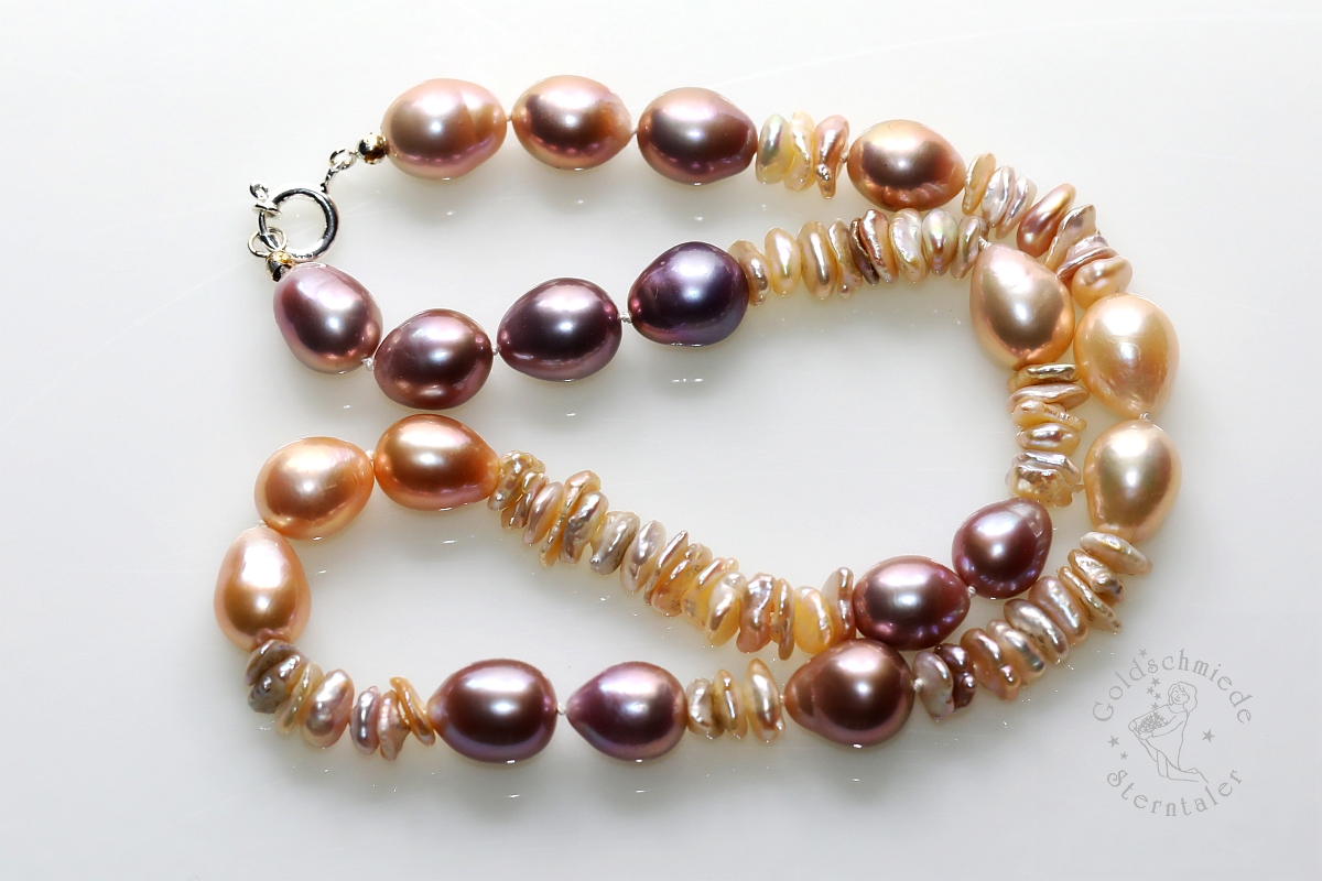 Halsschmuck aus Stahl, vergoldet mit Süßwasserperlen