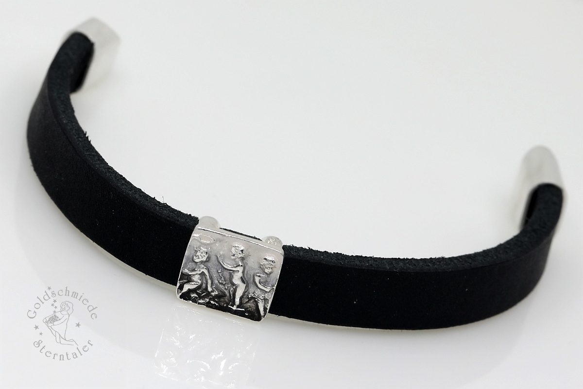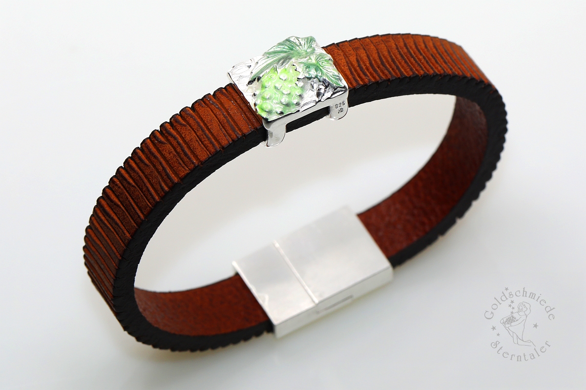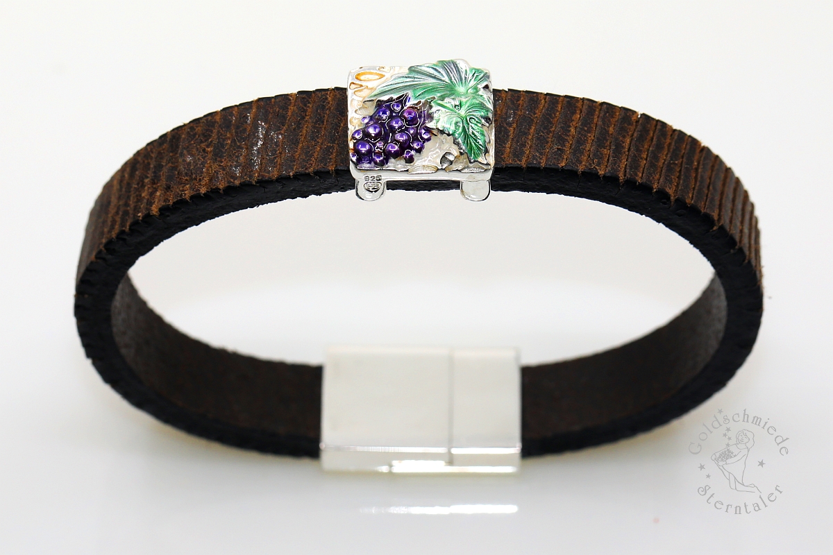 Lederarmband aus Silber und Edelstahl mit Weintraube