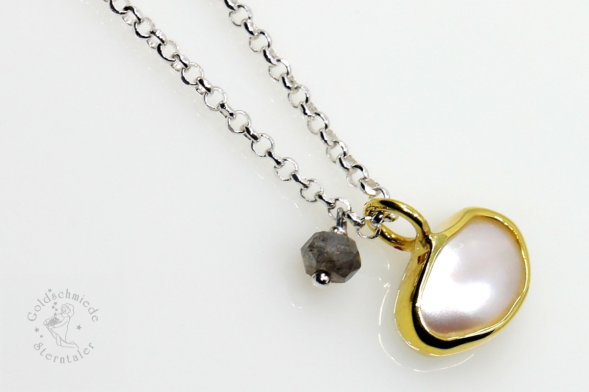 Halsschmuck aus Silber und Gold mit Perle und Spektrolith