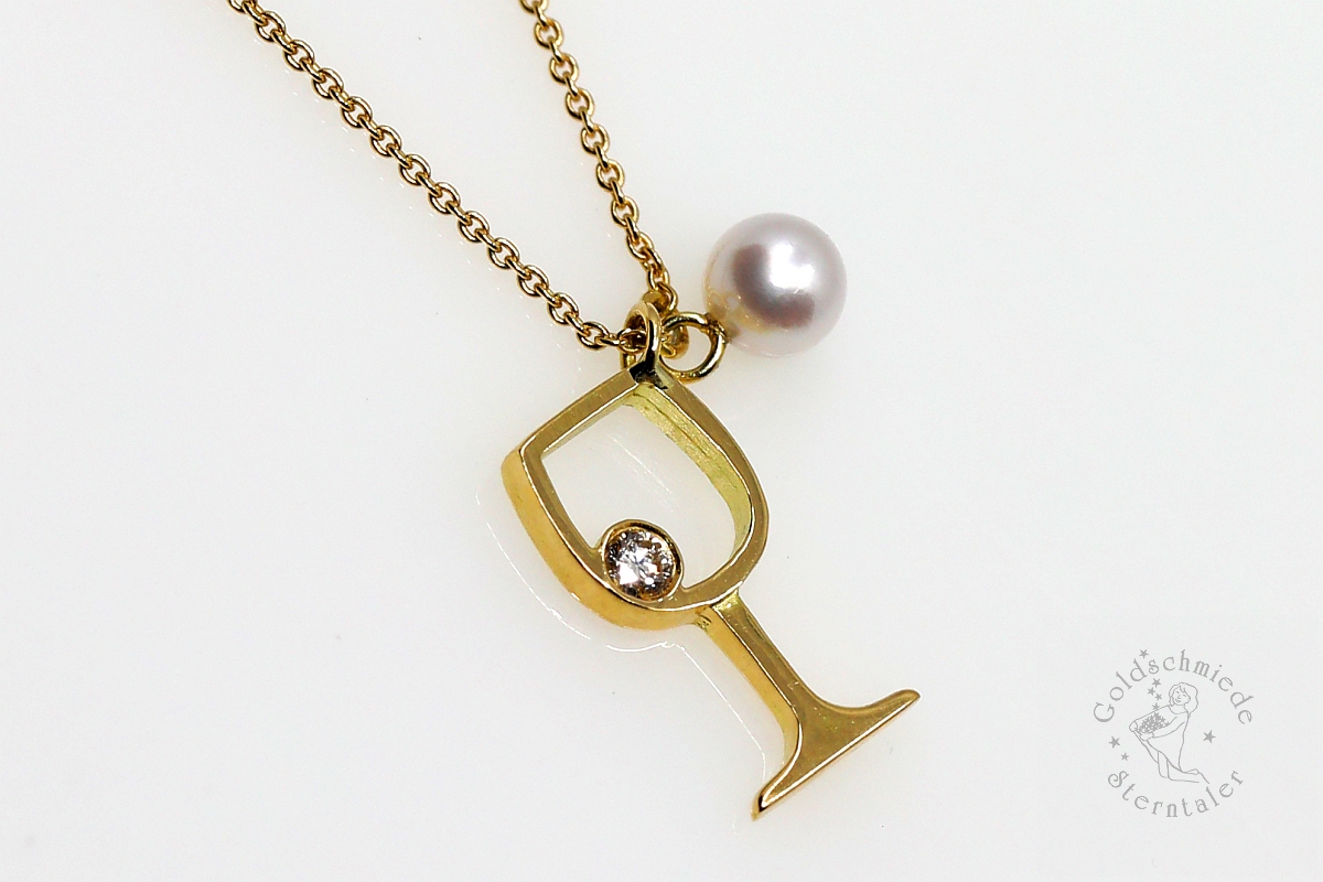 Halsschmuck aus 750 Gold mit Brillant und Perle