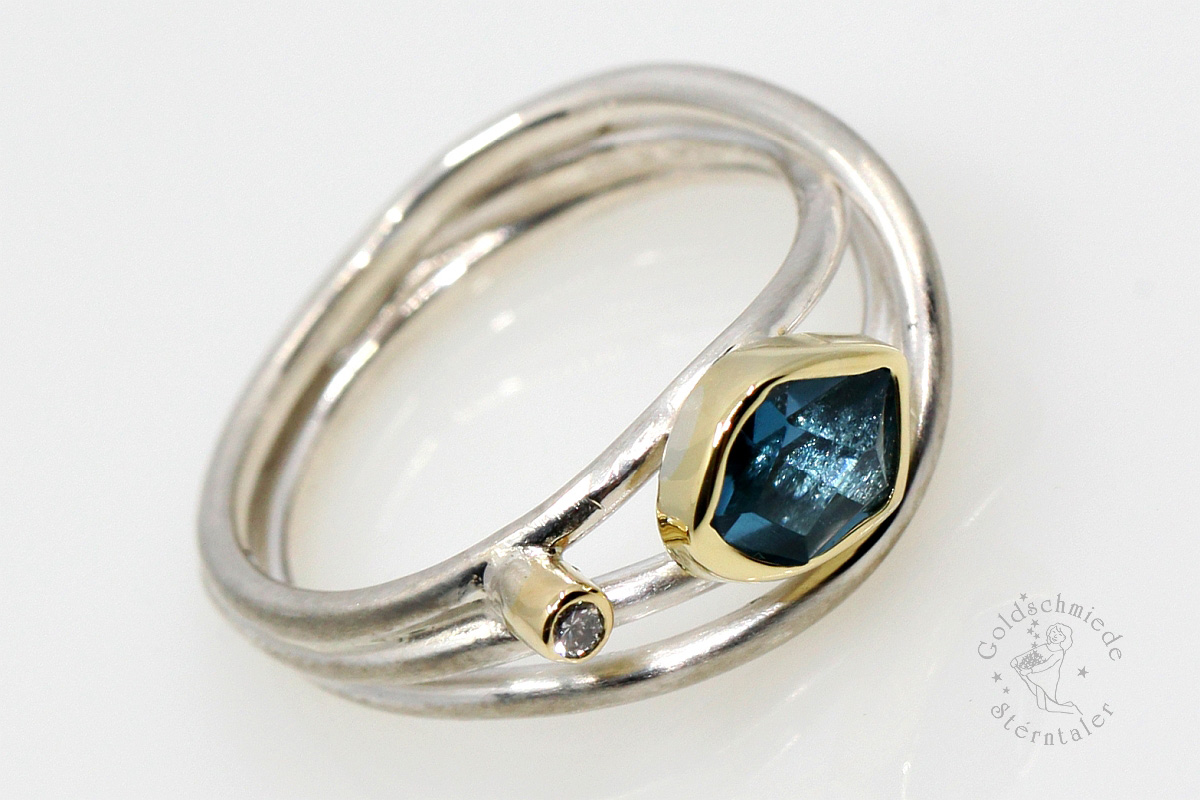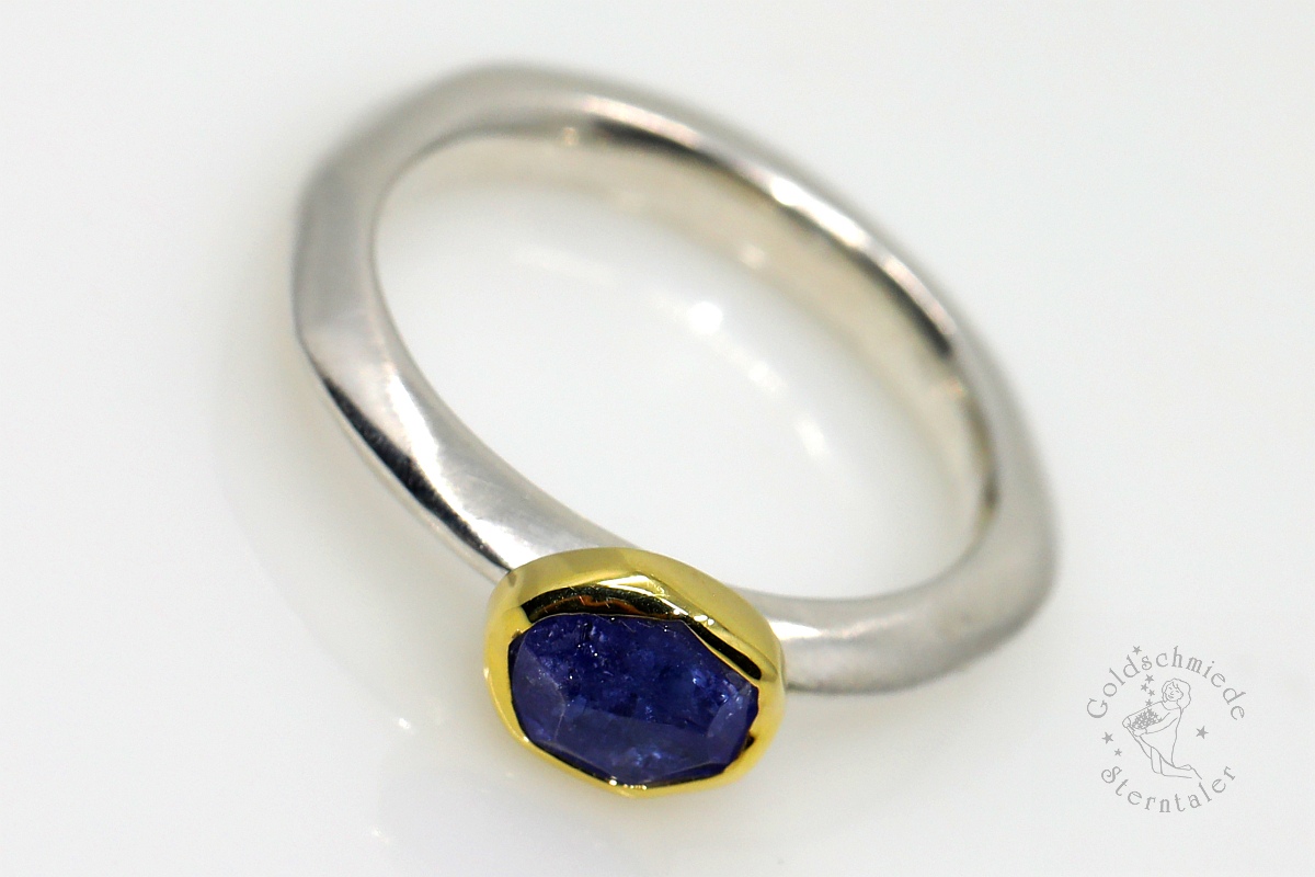 Ring aus Silber und Gold mit Tansanith und Brillant