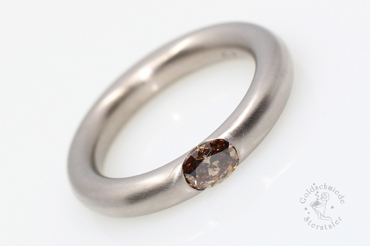 Diamant (0,53 ct), oval, naturfarben, cognac