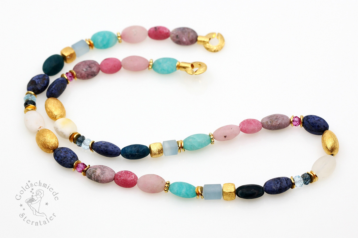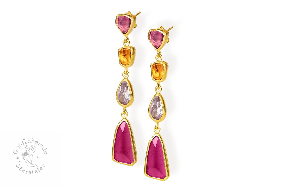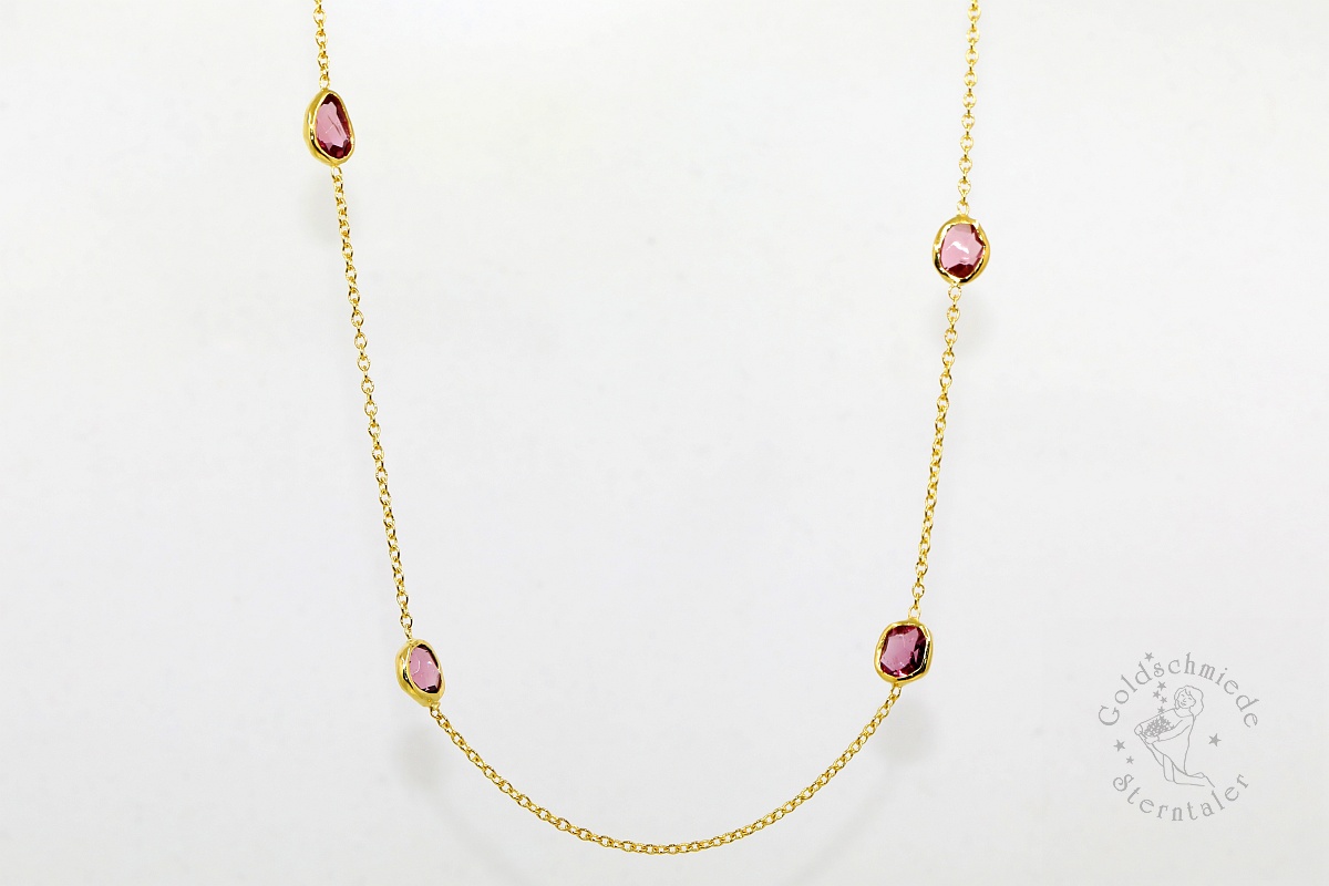 Achate, Granate, Rubine, Turmaline, Rhodolithe, Spinelle oder Quarze gibt es in vielen Varianten der Farbe Rot, angefangen bei einem tiefen Glutrot über Rubinrot bis hin zu Rosa bzw. Pink.