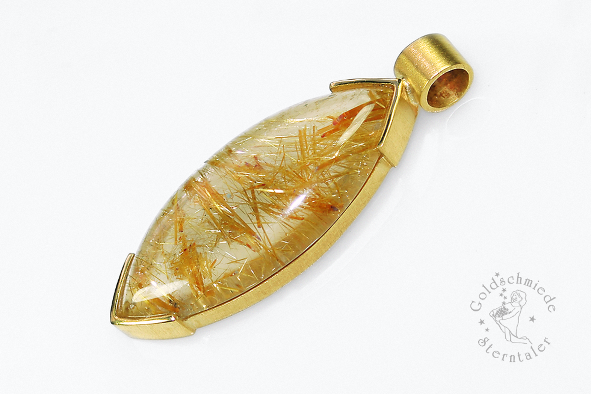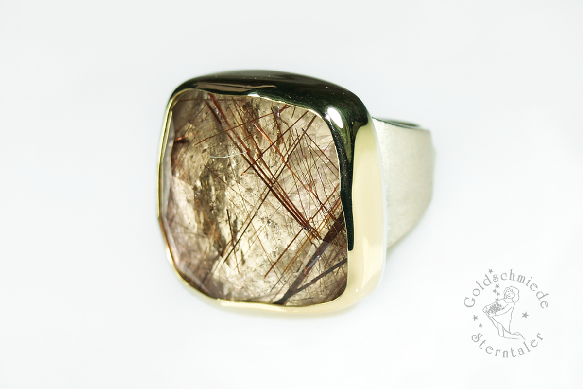 Als Unikatstein sind Rutilquarze besonders reizvoll und fordern förmlich auf, verarbeitet zu werden. Ihre Einzigartigkeit nimmt mich ganz gefangen, und es ist meiner Goldschmiede eine große Freude, dieses Naturschauspiel in Schmuckstücke eingefangen zu haben und Ihnen präsentieren zu können.
