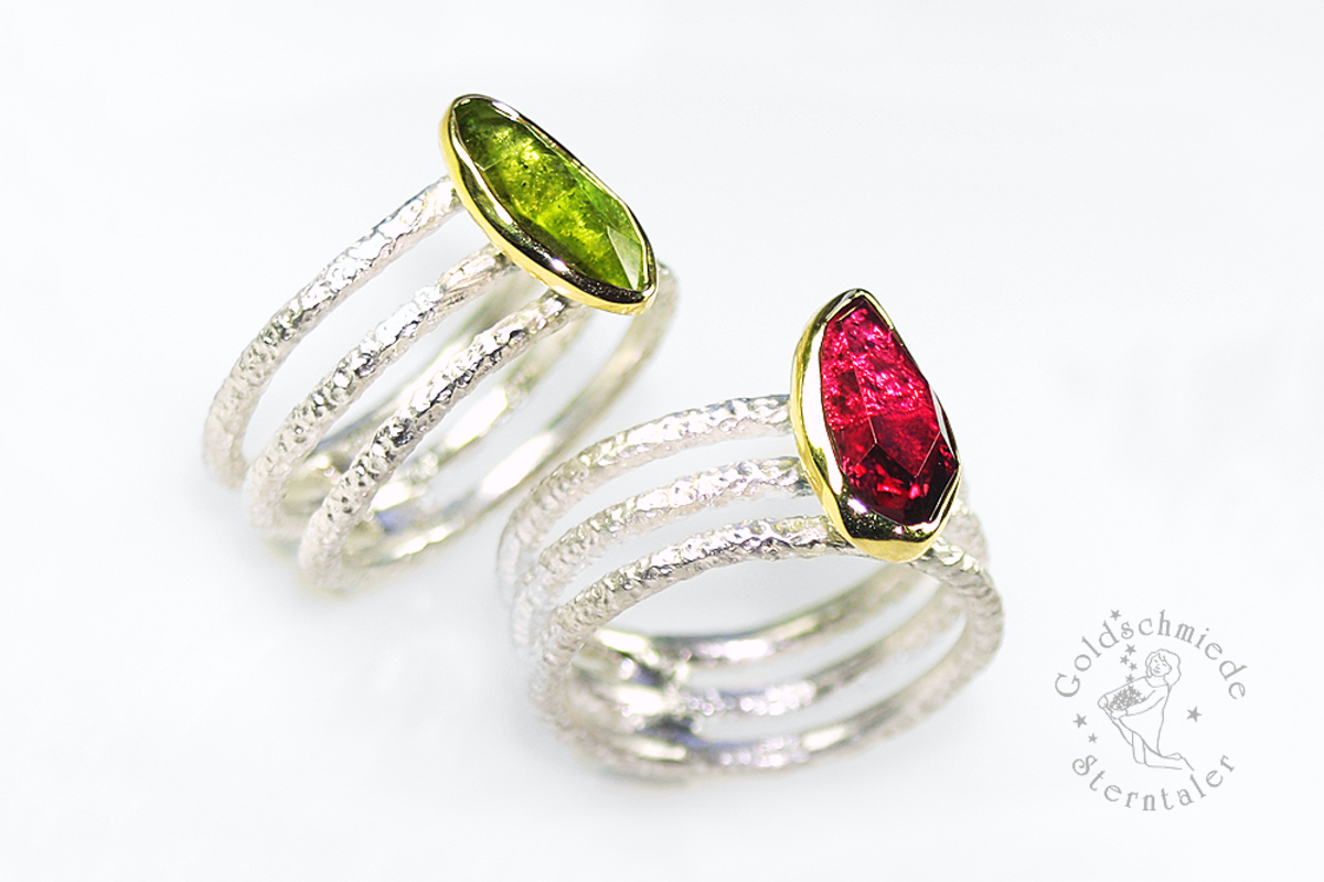 Der Name Turmalin stammt aus dem Singhalesischen in Sri Lanka. Das Wort "tura mali" bedeutet "Stein in gemischten Farben". Diesem Namen entsprechend, existieren die Edelsteine der Turmalingruppe in den unterschiedlichsten Farben. Einer alten, ägyptischen Legende zufolge, ist der Turmalin auf seinem langen Weg aus dem Erdinneren hinauf zur Sonne über einen Regenbogen gewandert. Dabei hat er alle Farben des Regenbogens angenommen. Mit geschätzten 100 bekannten Farbnuancen lässt der Turmalin wahrlich keinen Farbwunsch offen.